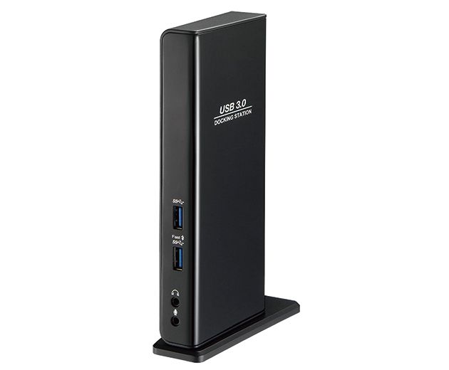 - Connects additional USB peripherals, Ethernet, speakers, and microphones with one cable